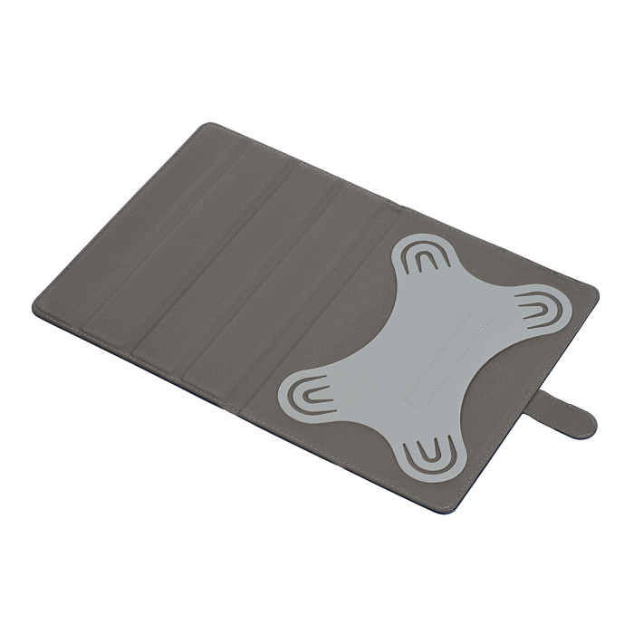 Універсальна обкладинка для планшетів та електронних книг. Зовнішня частина виконана з якісної PU шкіри, всередині м’яка підкладка з мікрофібри. У закритому положенні чохол фіксується на магнітну застібку. Для встановлення планшету передбачено спеціальне силіконове кріплення. Чохол має положення для роботи, читання і перегляду відео.
