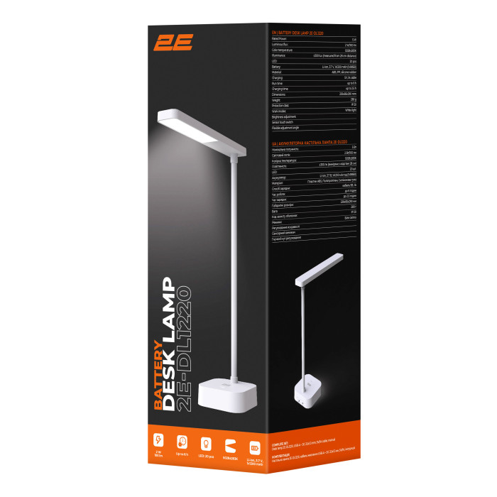 Настільна лампа 2E-DL1220 – компактний і стильний аксесуар для будь-якого простору. Потужність 5 Вт забезпечує достатнє освітлення для щоденних завдань, а завдяки колірній температурі 5 000 K гарантовано природне біле світло, яке не напружує очі навіть упродовж тривалого часу.
