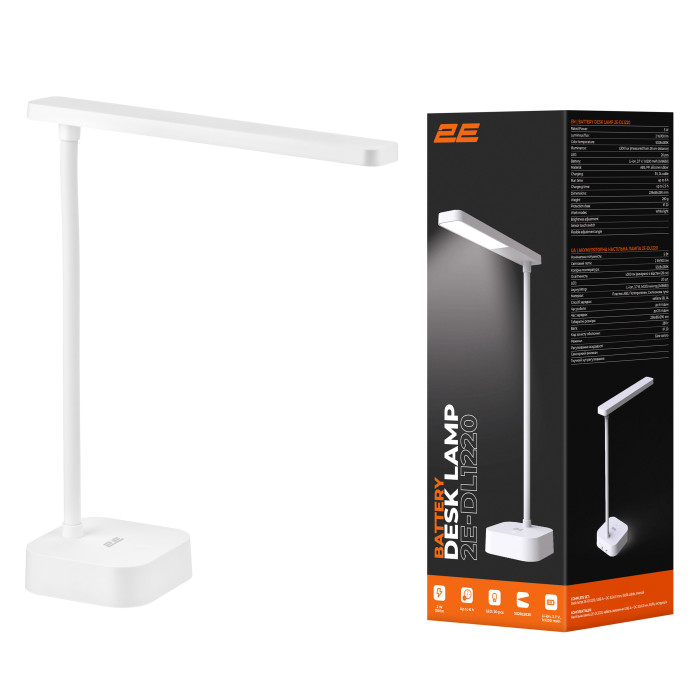 2E Лампа настільна з акумулятором 5Вт 5000K 1200мАг USB-A без БЖ білий