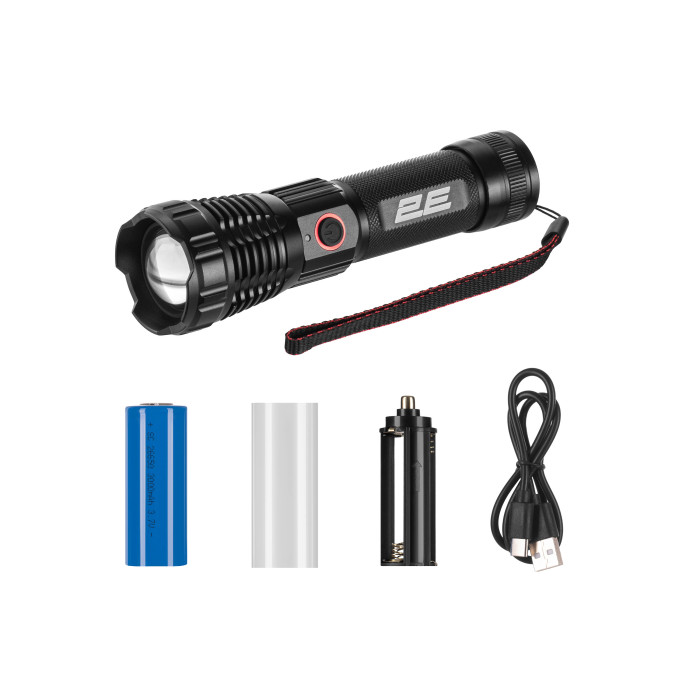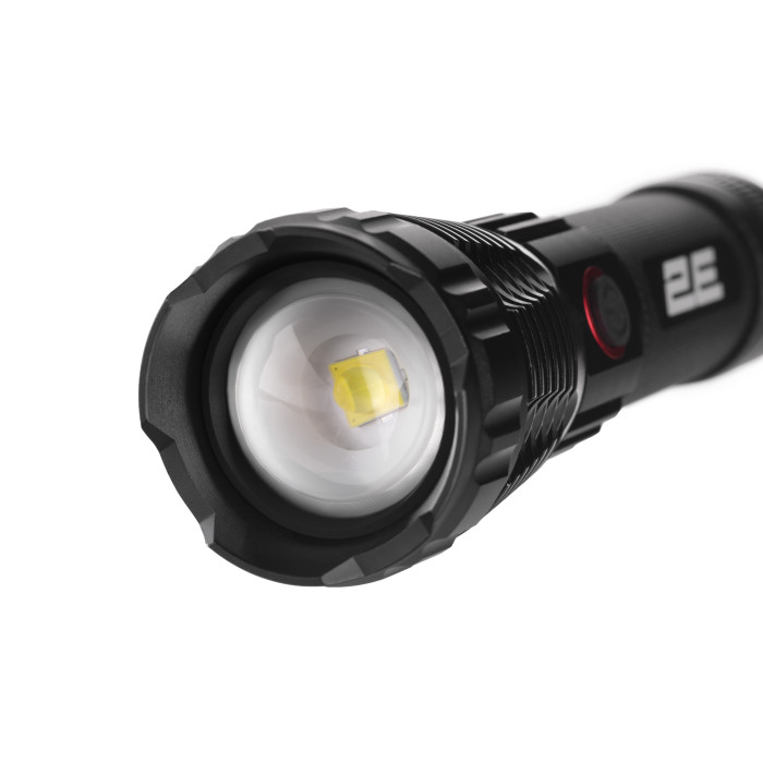 Ручний ліхтар 2E-FLYB2630 оснащено якісним світлодіодом XHP70 зі світловим потоком 2 000 люмен та потужністю 10 Вт. Дальність світла становить 200 м. Корпус виготовлено з алюмінієвого сплаву, клас захисту IP68, є індикатор рівня заряду акумулятора.