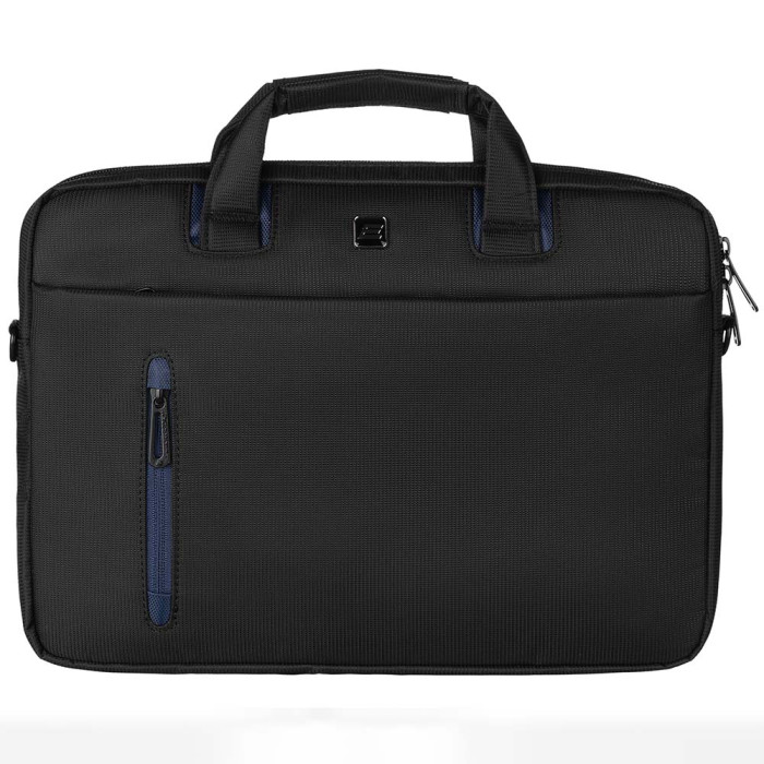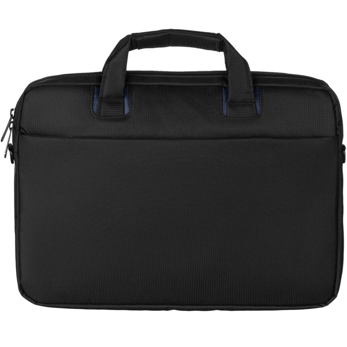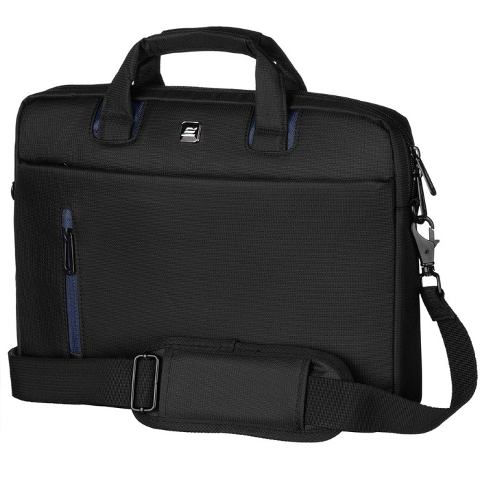 Сумка чорного кольору з синіми вставками для повсякденного використання. Виконана з водовідштовхуючого нейлону в комбінації з матеріалом дна і стінок, що амортизує поштовхи та удари.... Читати далі...