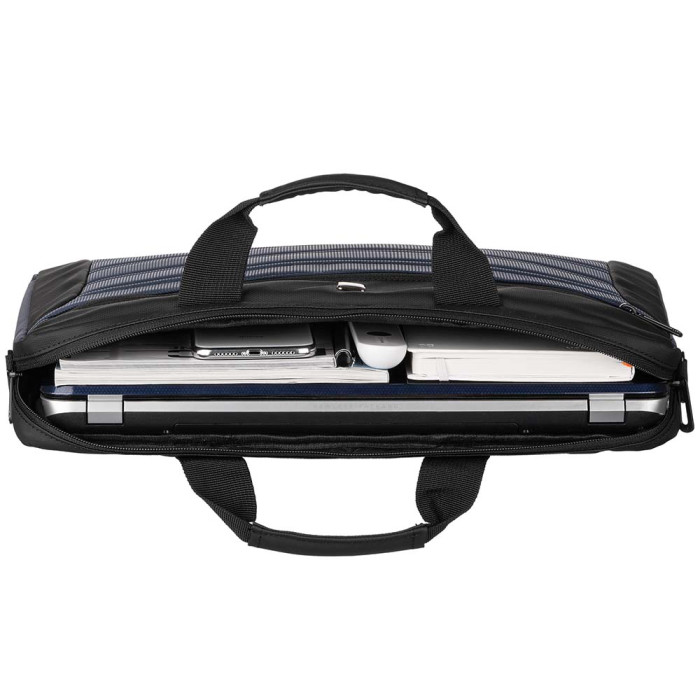 Сумка синього кольору з чорними вставками для повсякденного використання. Виконана з водовідштовхуючого нейлону в комбінації з матеріалом дна і стінок, що амортизує поштовхи та удари.... Читати далі...