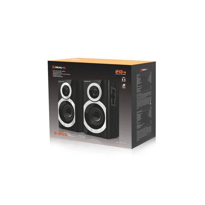 REAL-EL S-245 це мультимедійна акустична система, яка поєднує стильний дизайн з якісним звуком. Лакована передня панель і срібна окантовка динаміків надають їй сучасного вигляду, що стане прикрасою будь-якого інтер’єру. Завдяки корпусу з MDF та двосмуговій конструкції, S-245 забезпечує чисте та насичене звучання.