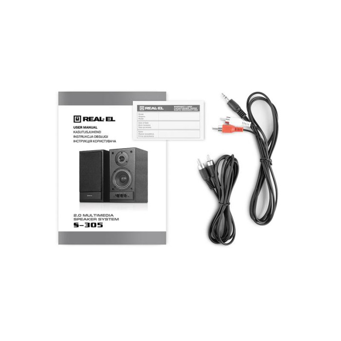 REAL-EL S-305: Ваш ідеальний партнер у світі звуку. Пориньте у глибокий і яскравий звук, який пробуджує емоції та перетворює кожен момент у незабутній. З діапазоном відтворення від тихих нюансів до потужних басів, ця система завжди відповідає на виклик.