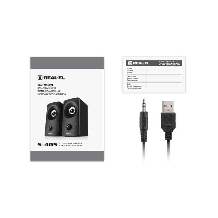 Для більшої універсальності є підключення через 3.5 мм аудіокабель. REAL-EL S-405 підходить для ПК, ноутбуків, планшетів, смартфонів та інших пристроїв. Живлення через USB забезпечує зручність використання у будь-яких умовах. Висока якість звучання, сучасний дизайн та зручне керування роблять REAL-EL S-405 ідеальним рішенням для щоденного використання.