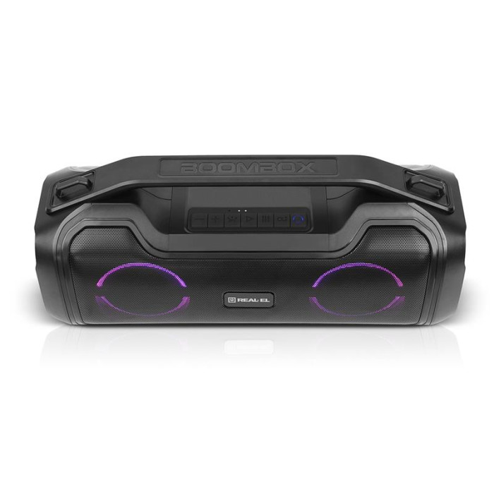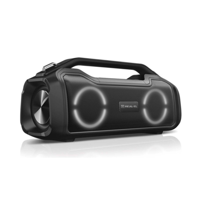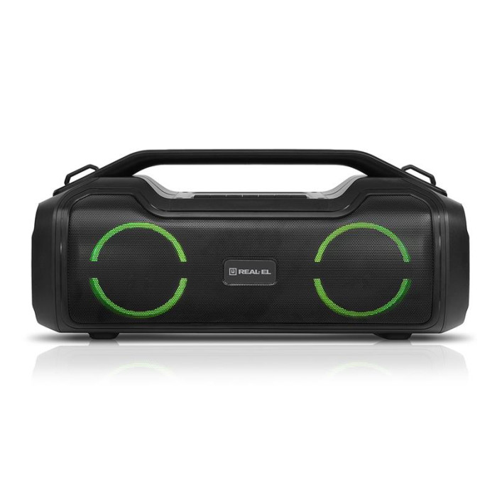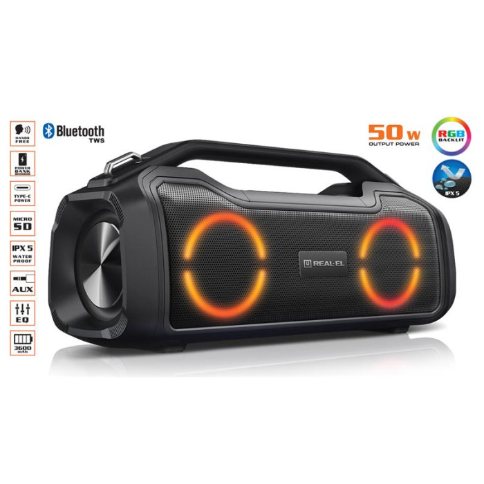 REAL-EL X-747 чудовий супутник для відпочинку на природі, потужний літій-іонний акумулятор забезпечить вас музикою на досить тривалий час, а функція караоке порадує любителів співу.
