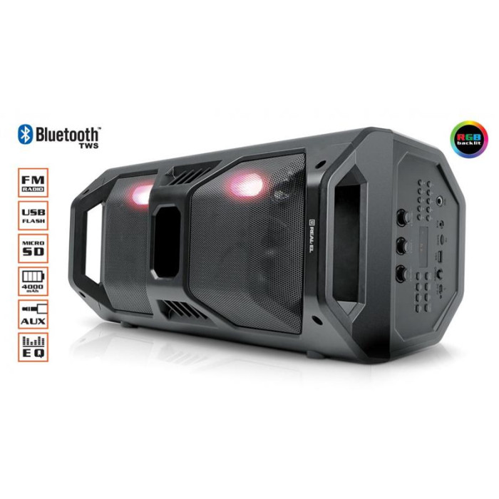 Мультимедійна Мультимедійна портативна акустична система REAL-EL X-757 має сучасний дизайн з RGB підсвічуванням і якісним звучанням. Широкий функціонал "бумбокса" дозволяє прослуховувати музику підключаючи мобільний при... Читати далі...