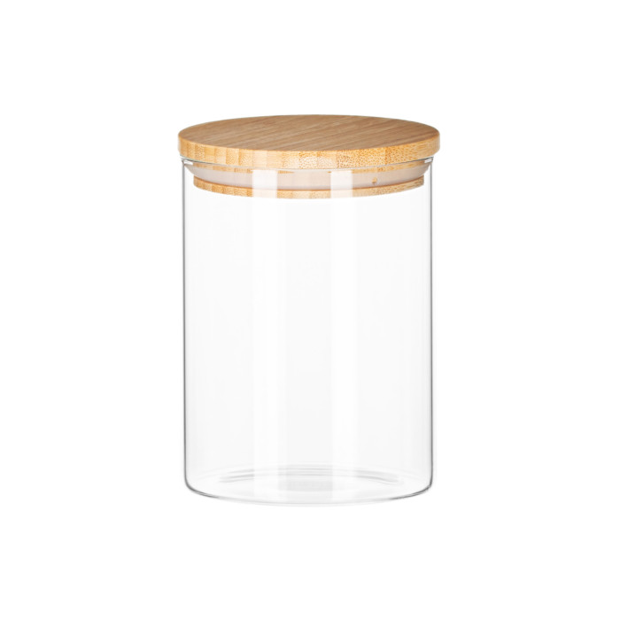 Банка для зберігання ARDESTO Midori, 540мл, скло, бамбук, кругла, прозорий