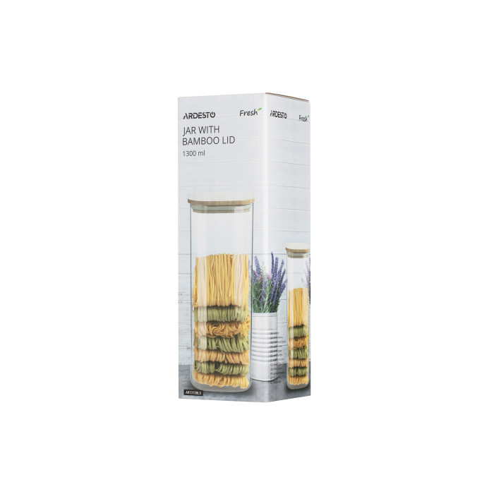 ARDESTO Банка для зберігання Fresh, квадратна, 1300 мл, скло, бамбук