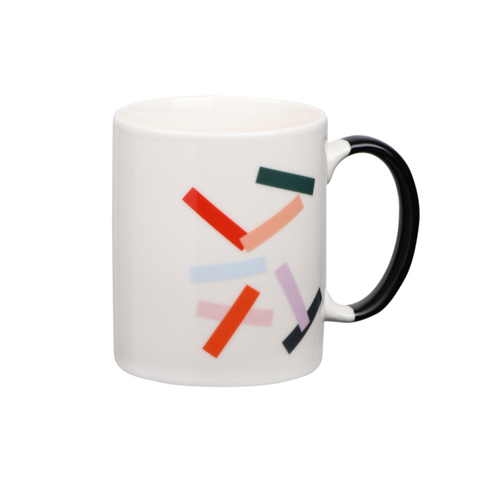 Порцелянова чашка заввишки 9,5 см і має об’єм 340 мл. Її декоровано оригінальним принтом на білому тлі. Можна мити в посудомийній машині та використовувати в мікрохвильовій печі.
