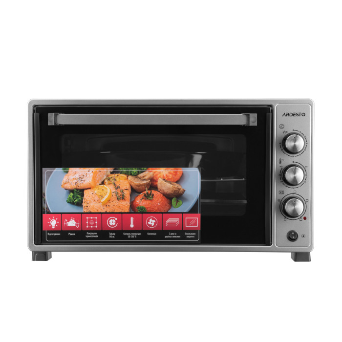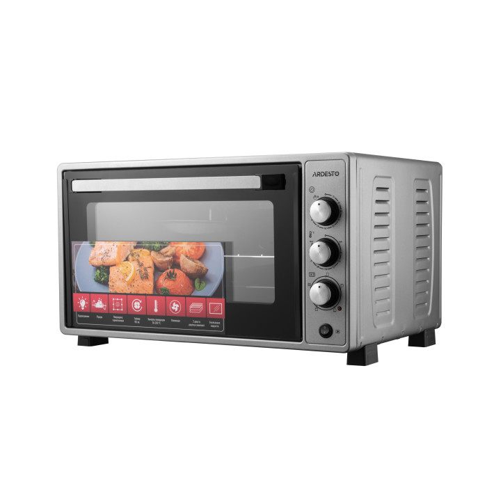 Піч електрична ARDESTO, 52л, 1700Вт, механіч., конвенція, подвійне скло, рожен, сіра (MEO-N52RCGR)