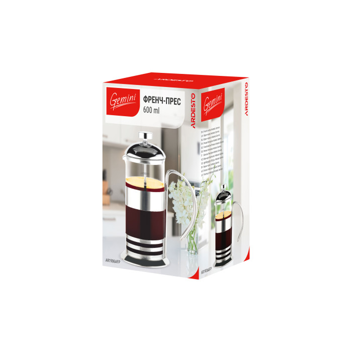 ARDESTO Френч-прес Gemini Asti, 600 мл, нержавіюча сталь, скло