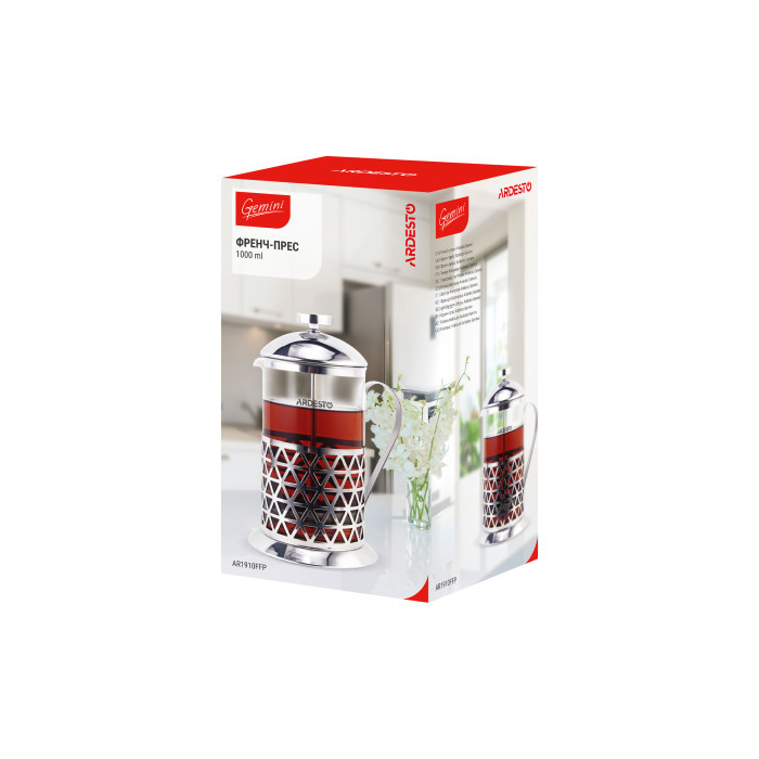 ARDESTO Френч-прес Gemini Fasano, 1000 мл, нержавіюча сталь, скло