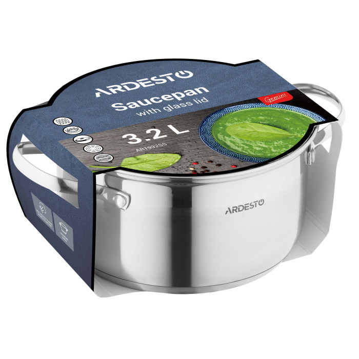 Каструля серії Gemini виготовлена з нержавіючої сталі. Девайс поставляється з термостійкою скляною кришкою з отвором для пари та сумісний з усіма видами плит, включаючи індукційну.