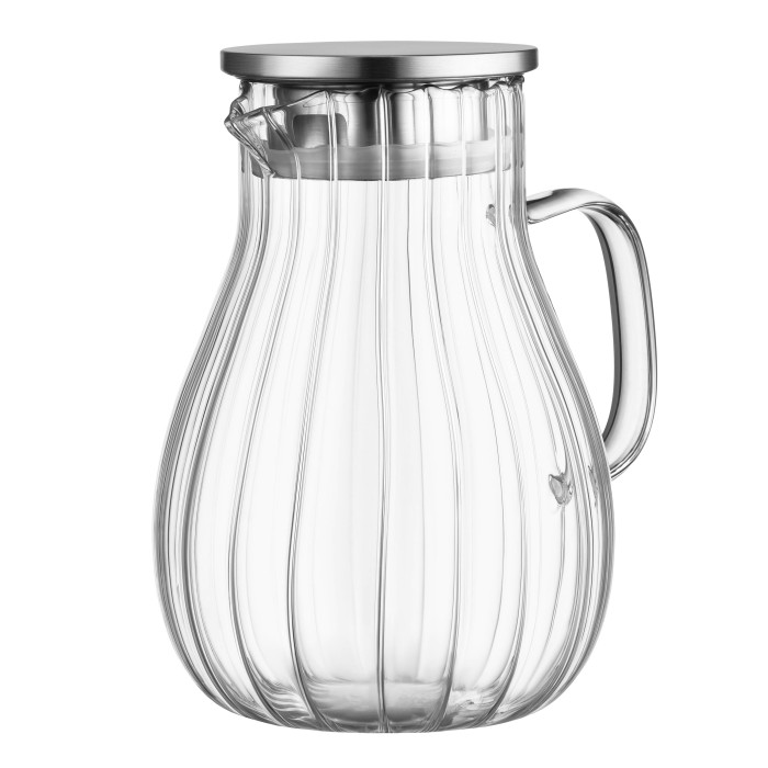 Прозорий глечик ARDESTO є універсальним виробом, який стане окрасою як святкового, так і повсякденного столу. Витончена форма у поєднанні зі знімною кришкою з нержавіючої сталі та ручкою з елегантним вигином сподобається поціновувачам мінімалістського дизайну. Завдяки об’єму 1 500 мл згодиться у родинах, де часто приймають гостей, або у офісах. Глечик заввишки 19 см; максимальний діаметр становить 13,5 см. Висока термостійкість становить -20…+150°C і гарантує використання як з гарячими, так і з прохолодними напоями. Виріб можна мити в посудомийній машині без використання агресивних мийних засобів.