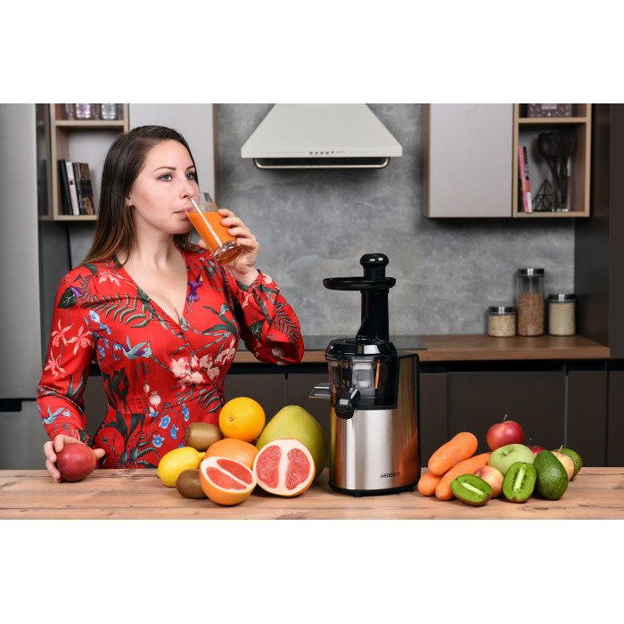 Шнековий соковитискач для приготування соку з різноманітних фруктів, овочів, ягід і навіть зелені та горіхів. Низькошвидкісна технологія віджиму забезпечує максимальну екстракцію поживних та корисних речовин без окислення, з мінімумом відходів та сухим макухою. Компактні розміри та продуманий дизайн сприяє простому та швидкому очищенню без зайвих зусиль.