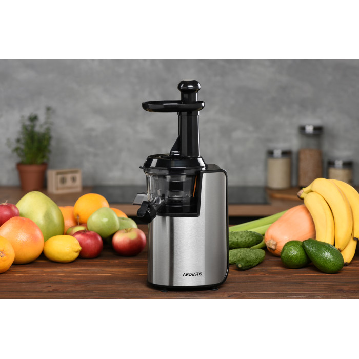 Соковитискач ARDESTO шнековий 200Вт, чаша-0.6л, жмих-0.6л, пластик/метал, сріблясто-чорний