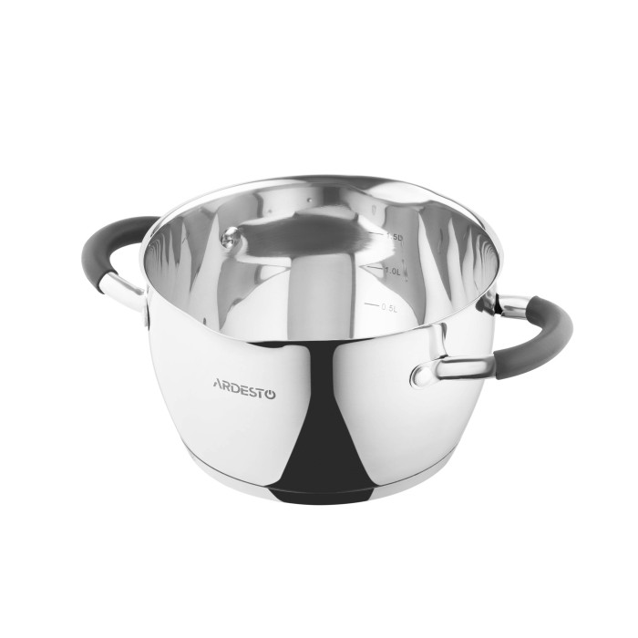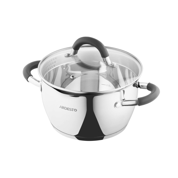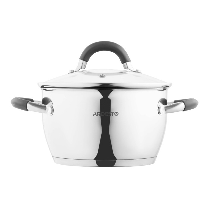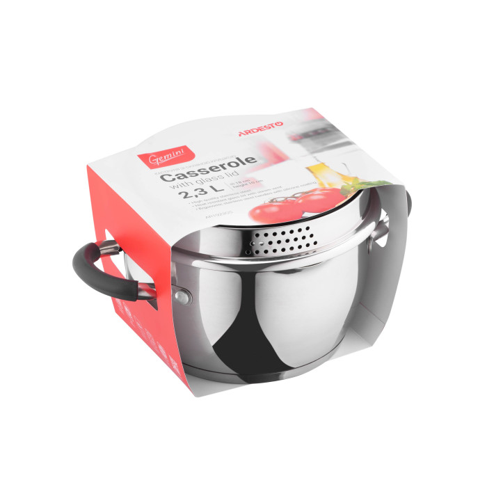 Каструля зі скляною кришкою та зливом Ardesto Gemini Livorno, 2.3л, нержавіюча сталь, силікон AR1923GS