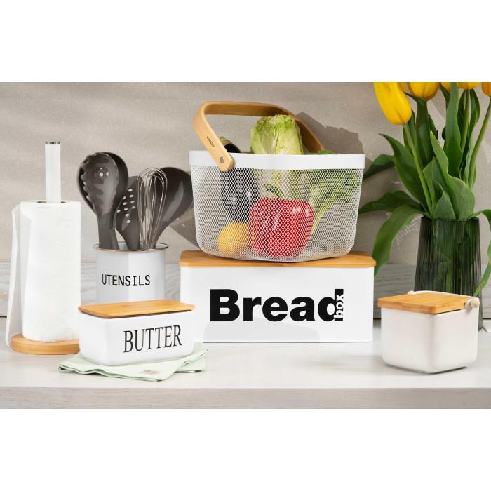 ARDESTO Хлібниця Midori 33х18х13см, метал, бамбук, білий