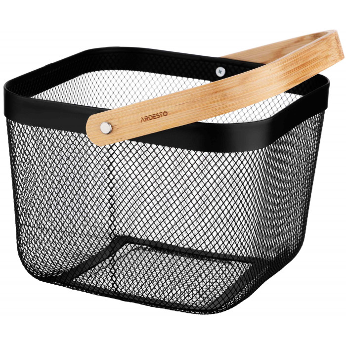 Кошик з ручкою ARDESTO Midori 25х24.5х18см, метал, бамбук, чорний