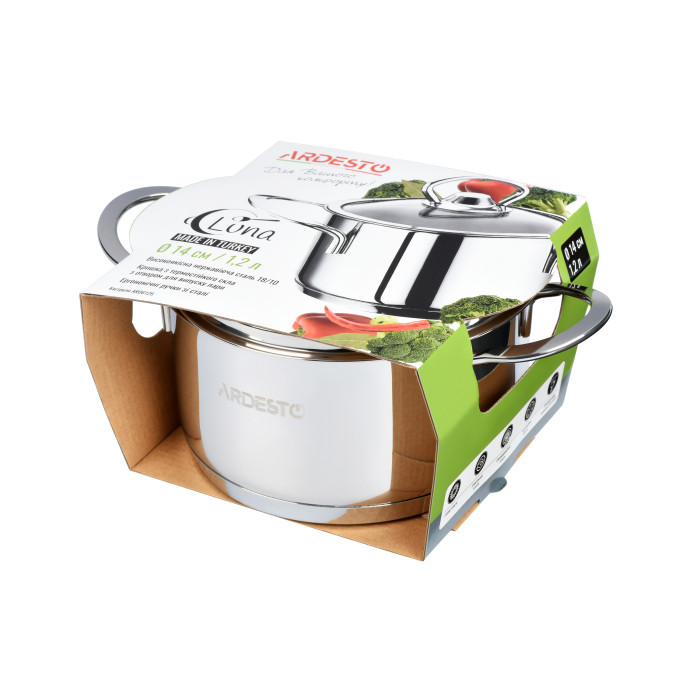 Каструля зі скляною кришкою Ardesto Luna,1.2л, нержавіюча сталь [AR0612S]