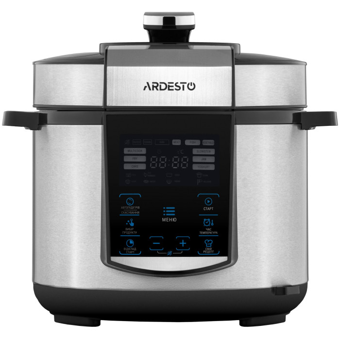 Мультиварка-скороварка Ardesto, 900Вт, чаша-5л, електронне керув., книга рецептів, метал/пластик, сірий