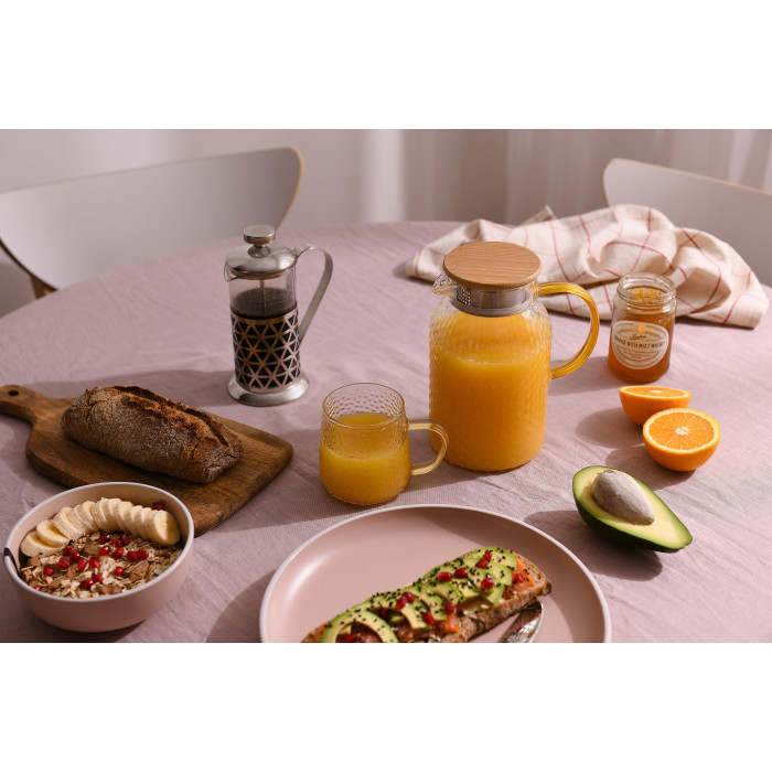 До набору входять чотири чашки об’ємом по 350 мл. Чашки виготовлено з термостійкого боросилікатного скла. Підходить для використання в посудомийній машині.