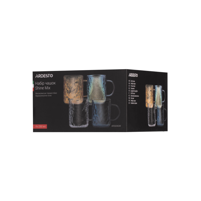 ARDESTO Набір чашок Shine mix, 260 мл, 4 од., боросилікатне скло