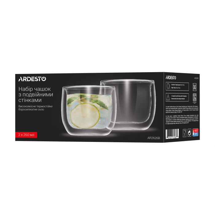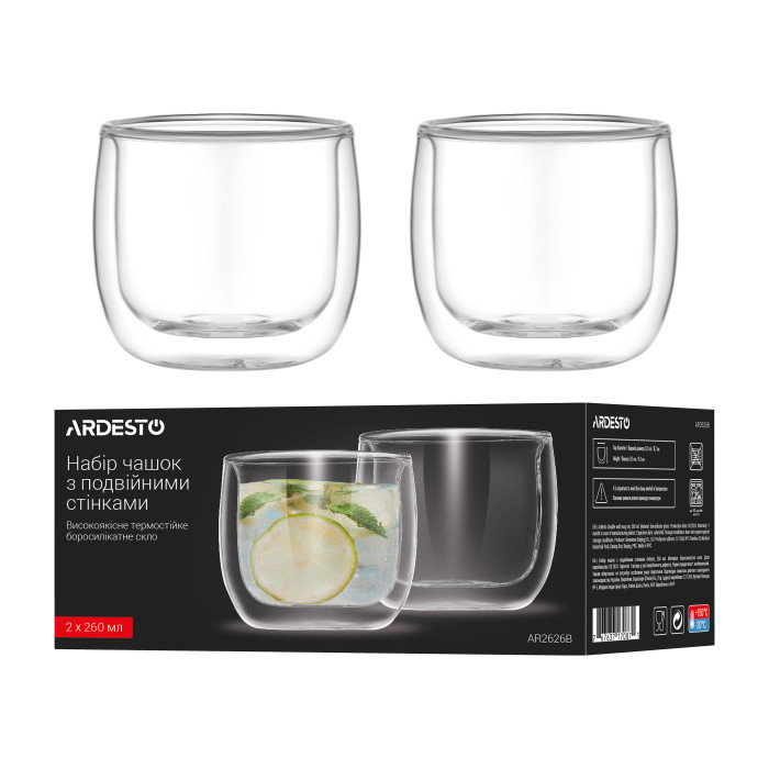 ARDESTO Набір чашок з подвійними стінками, 260мл, 2шт, боросилікатне скло, прозорий