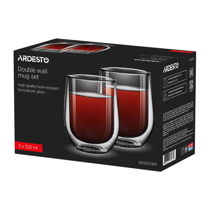 ARDESTO Набір чашок з подвійними стінками, 320мл, 2шт, боросилікатне скло, прозорий