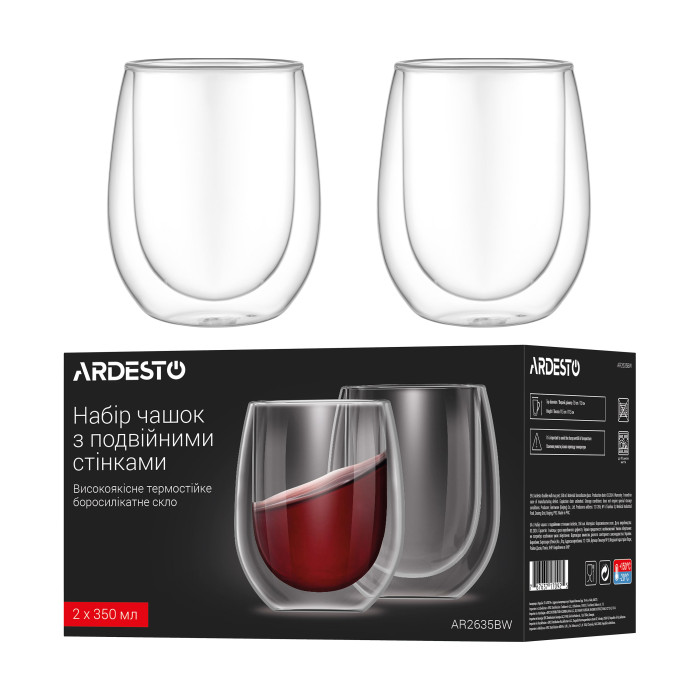 Набір чашок з подвійними стінками Ardesto, 350мл, 2шт, боросилікатне скло, прозорий (AR2635BW)