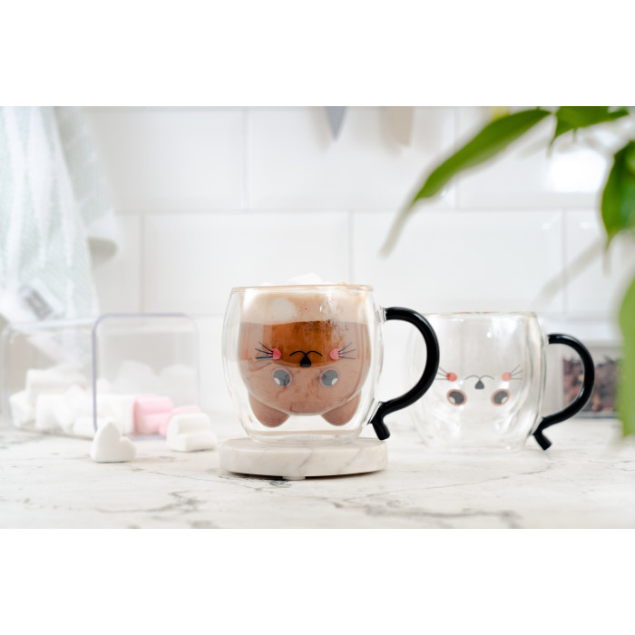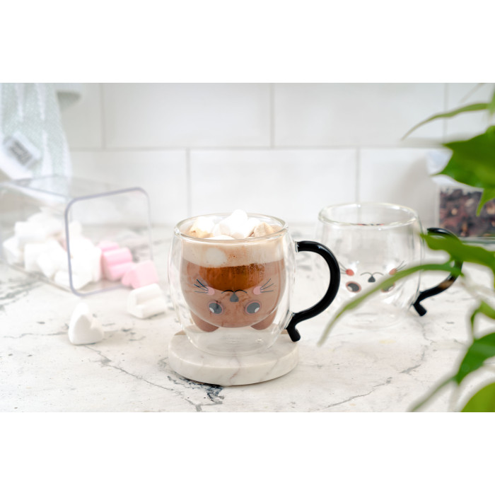ARDESTO Набір чашок з ручками Animals з подвійними стінками, 250 мл, 2 од., боросилікатне скло