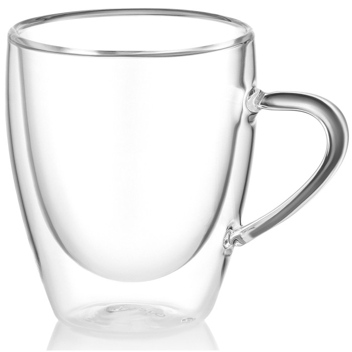 Чашки з подвійними стінками – це насолода для поціновувачів естетики та практичності. Вони надзвичайно міцні та легкі, витримують температуру від -20 до +150 °C. Їх можна використовувати як піали або креманки для морозива. Завдяки особливій конструкції здається, що напої та десерти в них парять у повітрі.