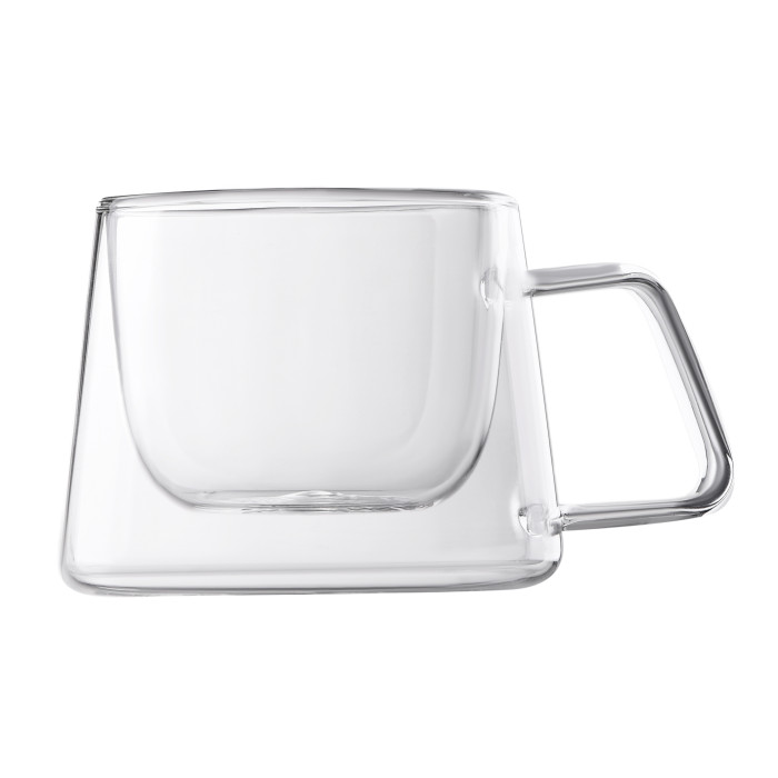 Набір чашок з подвійними стінками. До набору входять дві чашки об’ємом по 200 мл. Чашки виготовлено з термостійкого боросилікатного скла.