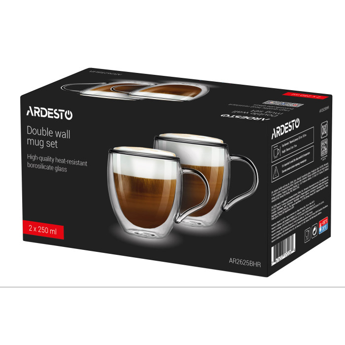 ARDESTO Набір чашок з ручками і подвійними стінками, 250мл, 2шт, боросилікатне скло, прозорий