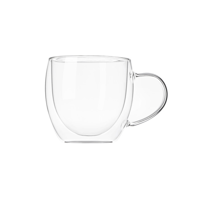 Набір чашок з подвійними стінками. До набору входять дві чашки об’ємом по 250 мл. Чашки виготовлено з термостійкого боросилікатного скла.