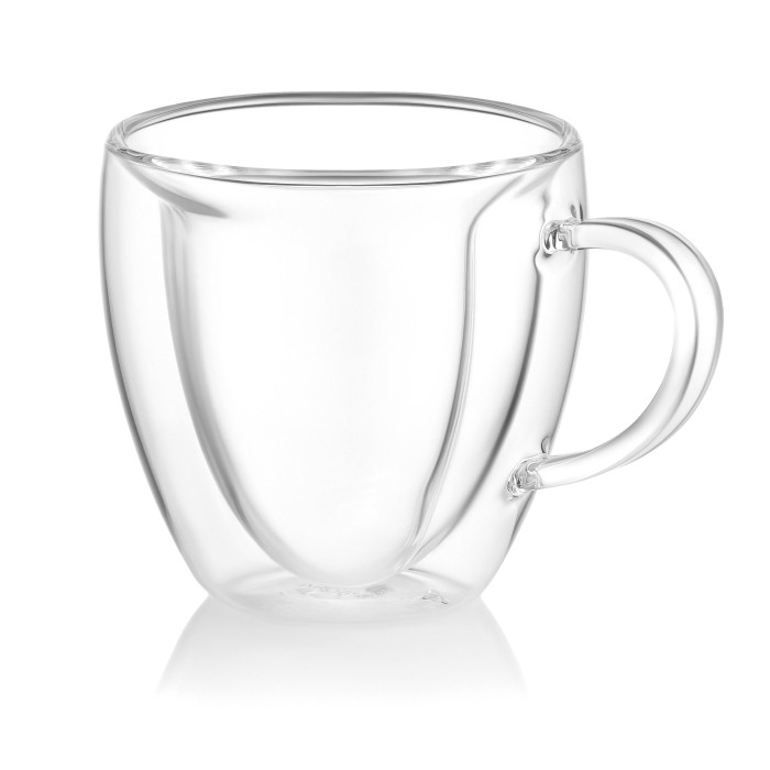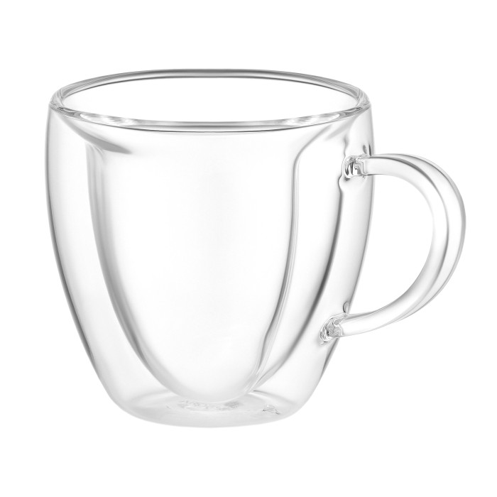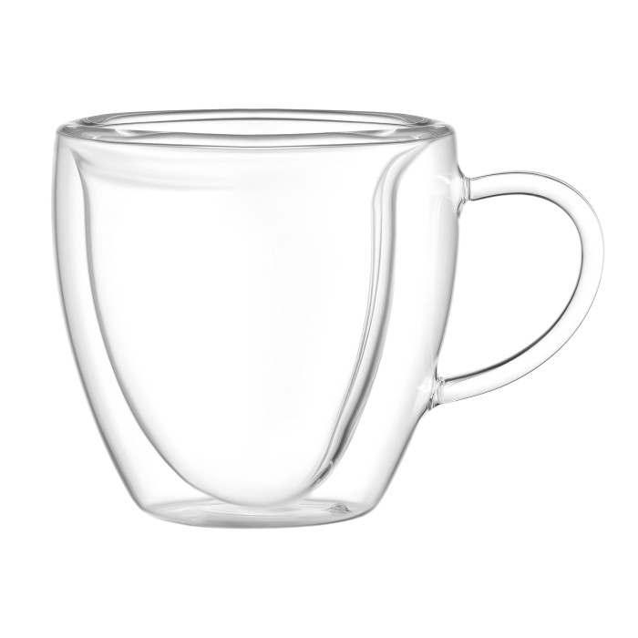 Чашки з подвійними стінками – це насолода для поціновувачів естетики та практичності. Вони надзвичайно міцні та легкі, витримують температуру від -20 до +150 °C. Їх можна використовувати як піали або креманки для морозива. Завдяки особливій конструкції здається, що напої та десерти в них парять у повітрі.