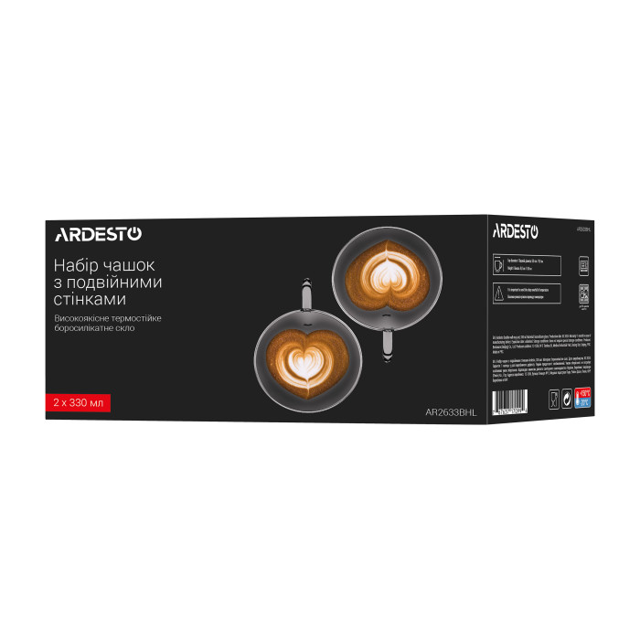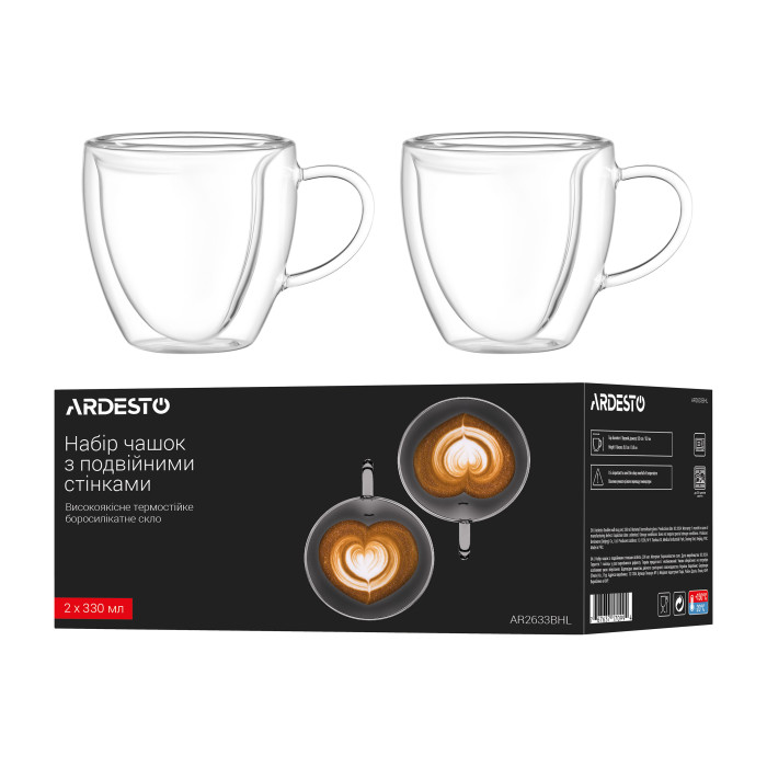 Набір чашок з ручками і подвійними стінками Ardesto, 330мл, 2шт, боросилікатне скло, прозорий (AR2633BHL)