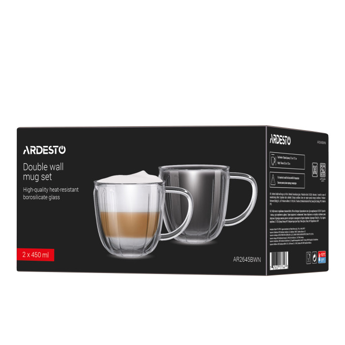 Відкрийте для себе чарівність простоти та елегантності з набором чашок із подвійними стінками ARDESTO, які виготовлено з якісного боросилікатного скла, що зумовлює їхню термостійкість від -20 до +150 °C. У наборі – дві чашки, об’єм кожної становить 350 мл за висоти 9,3 см і верхнього діаметра 11,1 см. Вироби придатні до миття в посудомийній машині (до 50 циклів) і використання в мікрохвильовій печі за температури до 100 °С.
