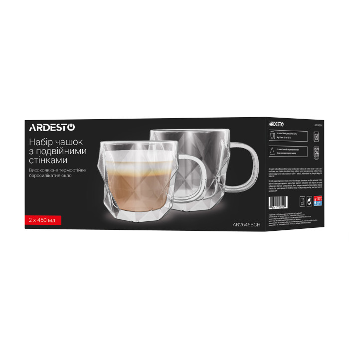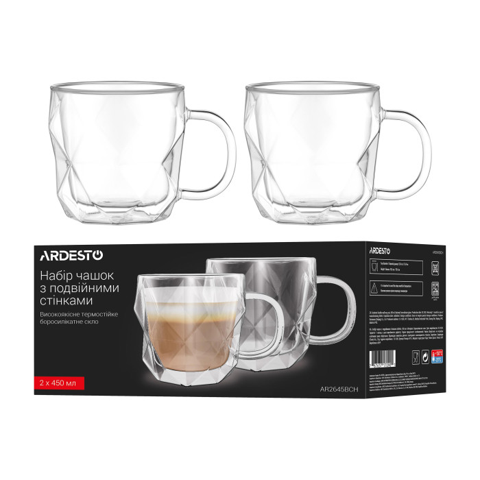 Набір чашок з ручками і подвійними стінками Ardesto, 450мл, 2шт, боросилікатне скло, прозорий (AR2645BCH)