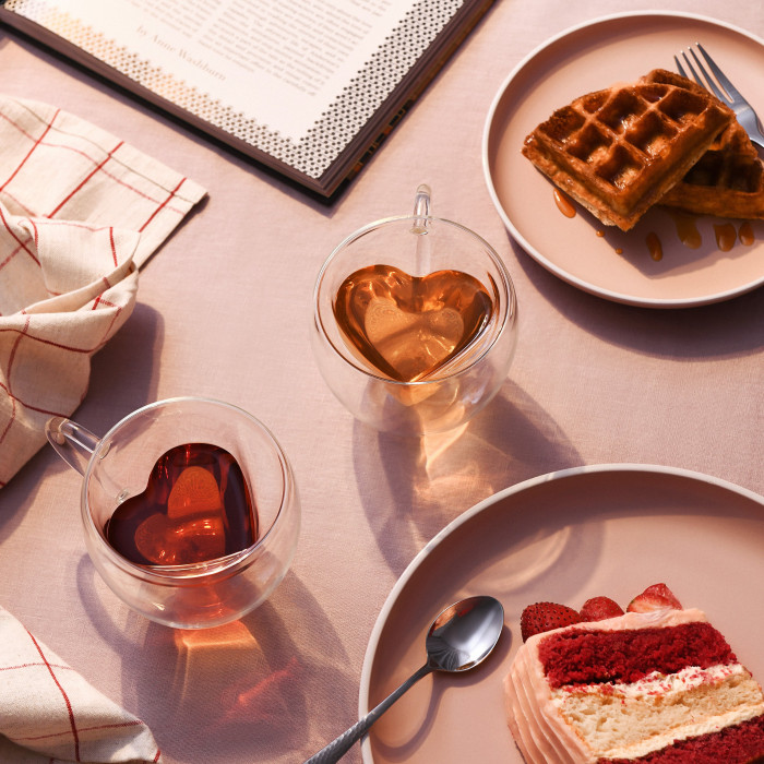 Набір чашок з подвійними стінками. До набору входять дві чашки об’ємом по 300 мл. Чашки виготовлено з термостійкого боросилікатного скла.