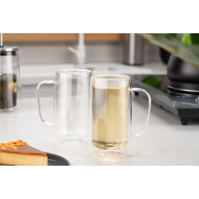 Набір чашок з ручками з подвійними стінками ARDESTO, 400мл, 2шт, боросилікатне скло, прозорий
