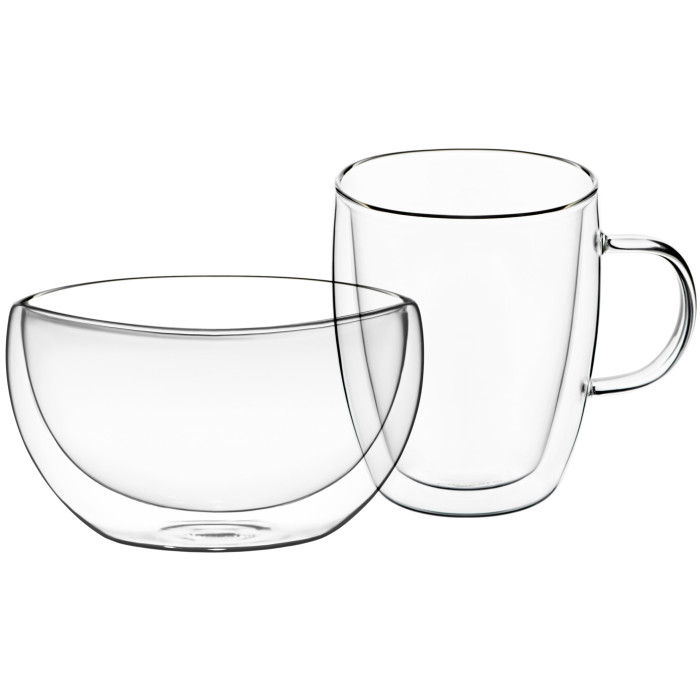 Набір для сніданку чашка і піала з подвійними стінками ARDESTO, 270мл, 500мл, боросилікатне скло, прозорий
