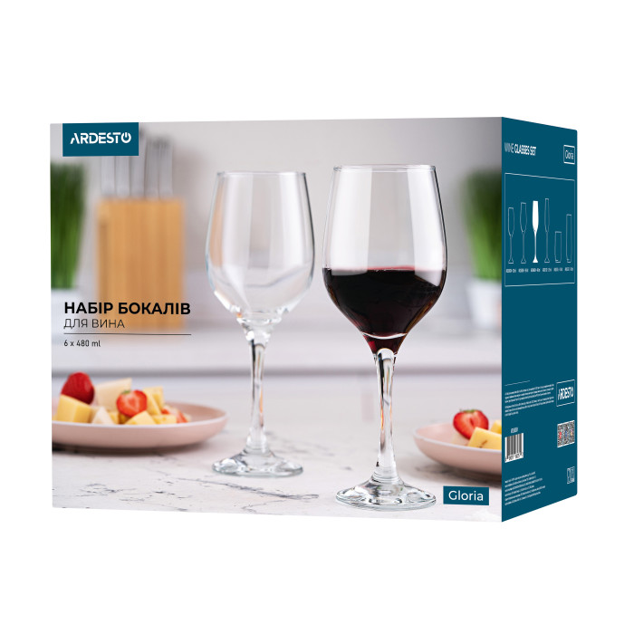 ARDESTO Набір келихів для вина Gloria 6 шт, 480 мл, скло