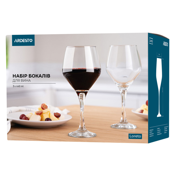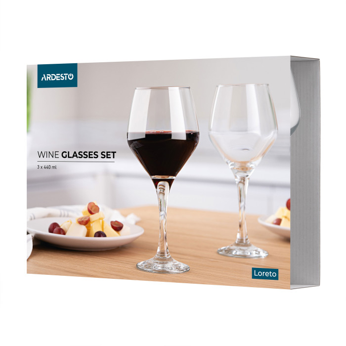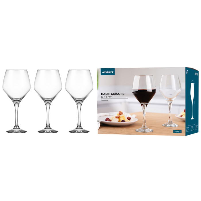 ARDESTO Набір келихів для вина Loreto 440мл, 3шт, скло, прозорий