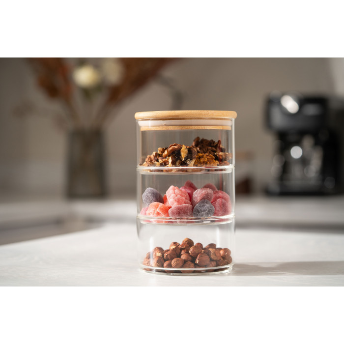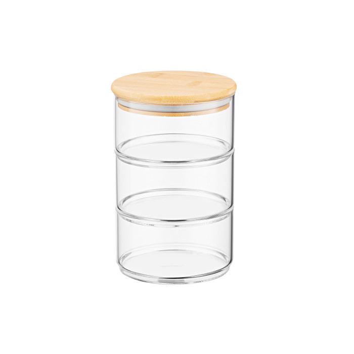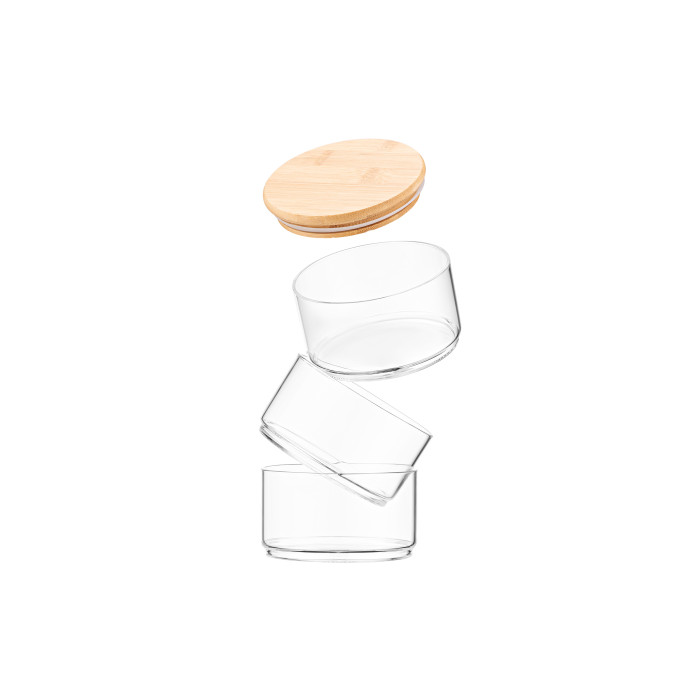 Набір для зберігання ARDESTO Midori складається із трьох прозорих ємностей об’ємом по 400 мл, що вироблені з боросилікатного скла, і бамбукової кришки. Вони надають змогу зекономити простір, якщо поставити їх одна на одн... Читати далі...