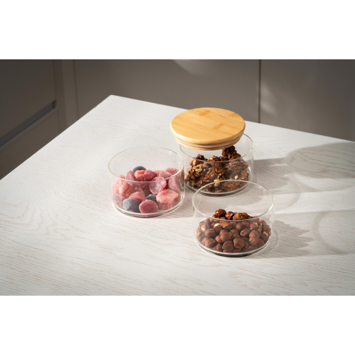 ARDESTO Набір ємностей для зберігання Midori, 3 х 400 мл, боросилікатне скло, бамбук AR1203CB