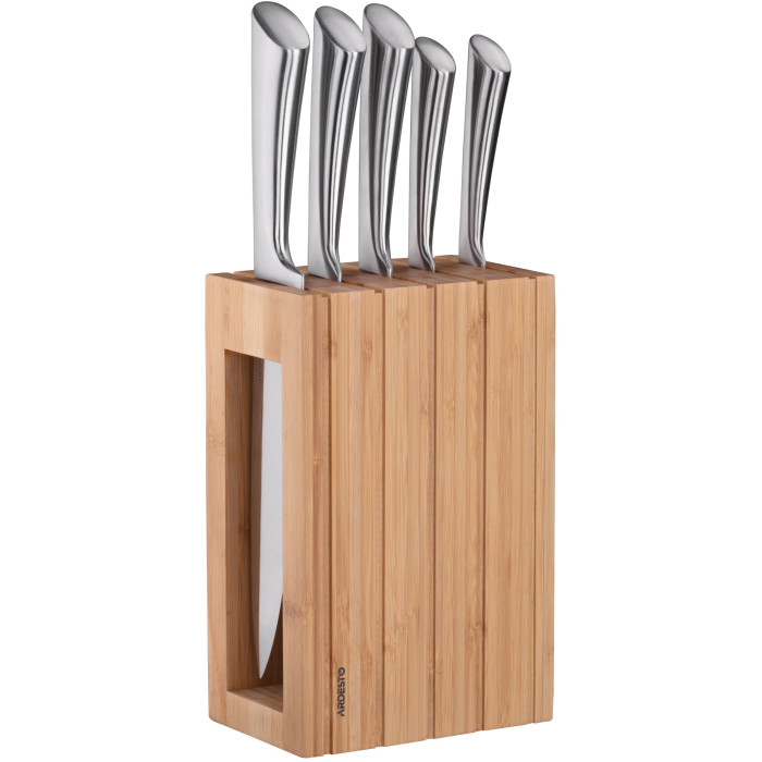 Набір ножів з блоком ARDESTO Black Mars, 6 предметів, нержавіюча сталь, бамбук