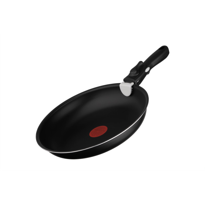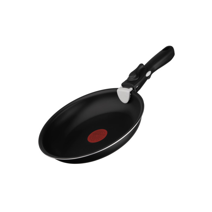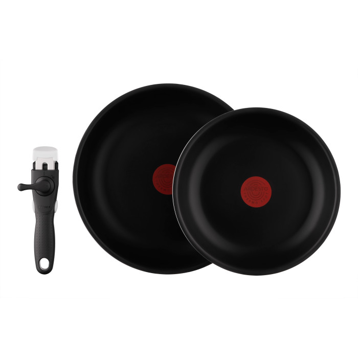 Набір складається із трьох предметів: двох пателень і знімного бакелітового руків’я із soft-touch-покриттям. Є надзвичайно вдалим рішенням для любителів розумно використовувати вільний простір. Сковороди виготовлено з алюмінію, зсередини вкрито протипригарним покриттям. На дні завтовшки 2,5 мм передбачено датчик температури.