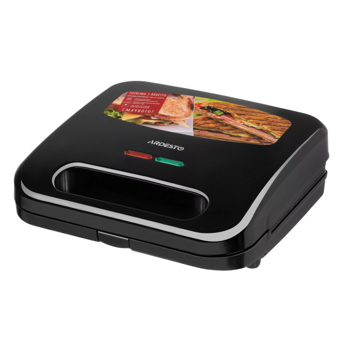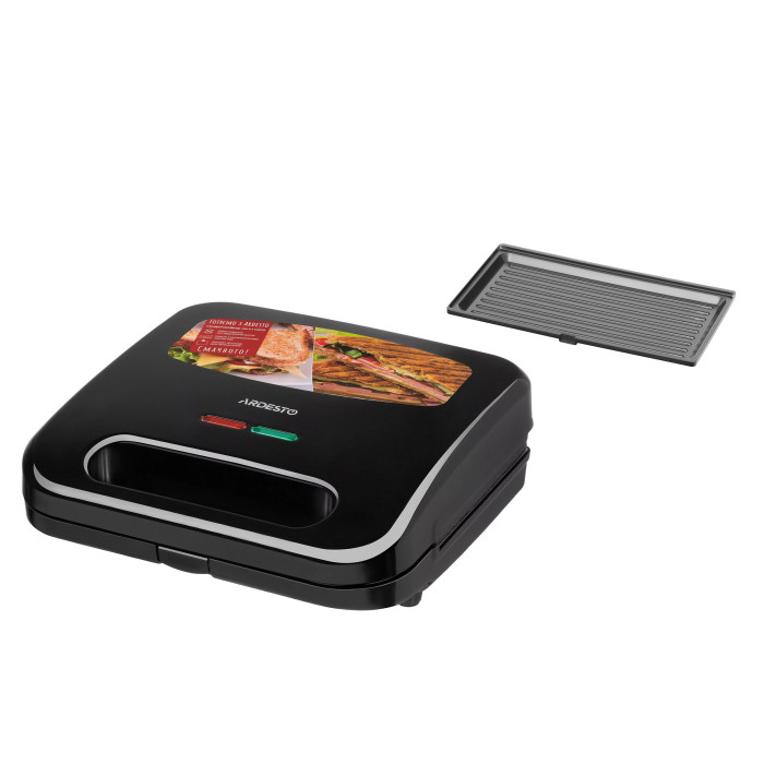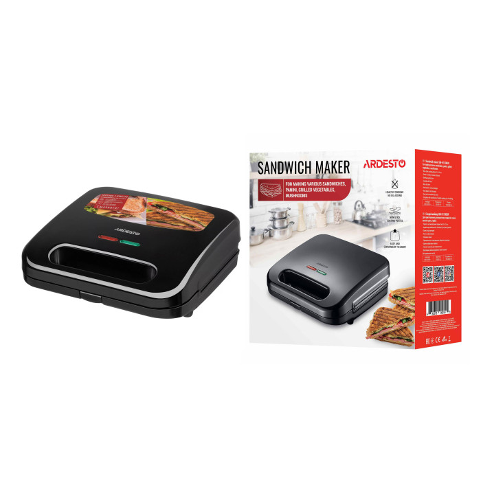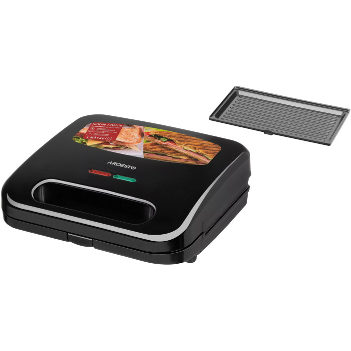 Сендвічмейкер Ardesto 700Вт, 1 пластина-гриль, корпус-пластик, чорний